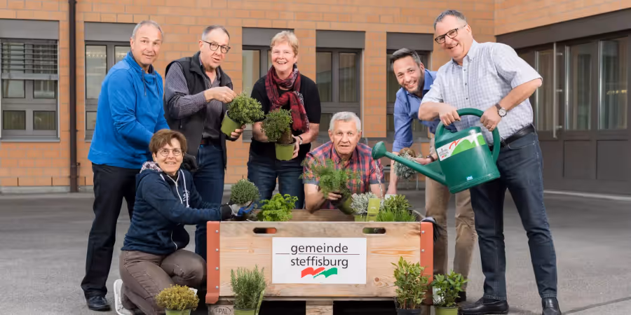 Manch einer mag sich fragen, weshalb die Gemeinde ein Gartenprojekt für die Bevölkerung startet. Gemeindepräsident Jürg Marti beantwortet diese Frage gleich zu Beginn: "Wir wollen bisher ungenutzten Raum in Wert setzen, im Siedlungsraum ein Stück «Kulturland» zurückgewinnen oder neu schaffen und damit die Biodiversität fördern. Wir wollen aber auch Begegnungsorte schaffen und der Bevölkerung Naturerfahrung bieten. Mit Veranstaltungen zu den Themen Biodiversität, Klimawandel und Ernährung wollen wir informieren und sensibilisieren." Die Gemeinde ist sich bewusst, dass sie mit diesem Projekt nicht die Welt verändert, aber: "Manchmal braucht es kleine Schritte. Im Kleinen beginnt Grosses", sagt Gemeindepräsident Jürg Marti. Er und seine Kolleginnen und Kollegen aus dem Gemeinderat machen den ersten Schritt. Sie liessen aus der ersten Garteninsel einen Kräutergarten werden, welchen sie nun pflegen, bis die Kräuter später an einer der Veranstaltungen für die Herstellung von Kräutersalz verwendet werden.