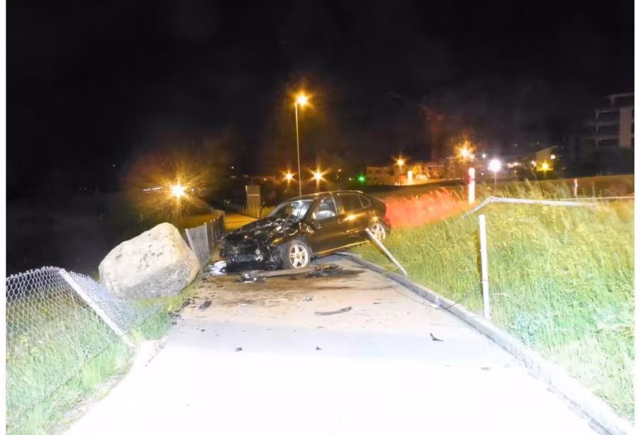 Am Mittwoch mitten in der Nacht kurz vor drei Uhr fuhr ein 30-Jähriger mit einem PW von Biberbrugg kommend in den Soleil-Kreisel. Aus bisher nicht geklärten Gründen fuhr er mit dem Auto gerade über den Kreisel und prallte ausserhalb des Kreisels gegen einen massiven Stein. Durch die Wucht des Anpralls wurde dieser einige Meter verschoben. Der Unfallfahrer blieb unverletzt. Die drei Mitfahrer verletzten sich leicht und wurden vom Rettungsdienst Lachen und Horgen hospitalisiert. Die Feuerwehr Feusisberg-Schindellegi musste wegen ausgelaufenem Oel aufgeboten werden.