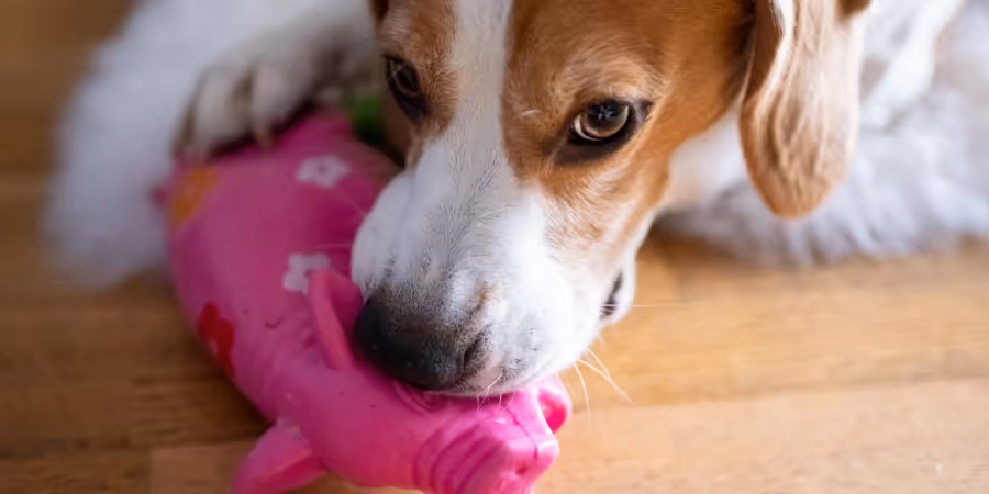 Sie sollten jedoch aufpassen, dass Ihr Hund sein Spielzeug nicht zerstört, um den «Quietscher» zu töten. Ansonsten droht Verschluckungsgefahr.