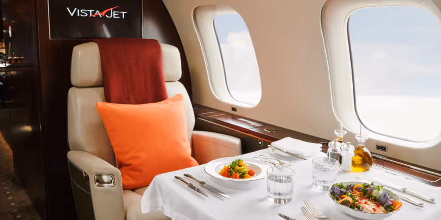 Zu den angebotenen Dienstleistungen gehören eine Vorflug-Konsultation mit einem Ernährungsberater von VistaJet. Die Speisen vor und während des Fluges werden dann darauf abgestimmt zubereitet.