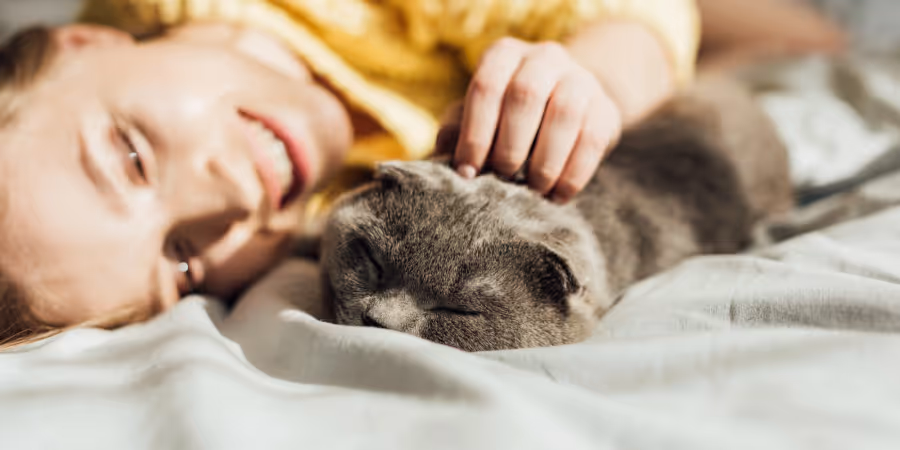 Streicheleinheiten und Zeit mit der Katze helfen dem Tier, sich zu entspannen und später ruhig einzuschlafen.