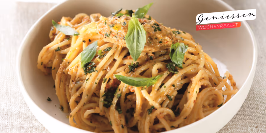 Annemarie: Die Grundzutaten für den Originalpesto aus Genua bestehen aus Basilikum, Knoblauch und Olivenöl. Alles Übrige kann man nach Lust und Laune dazu kombinieren. Also kann man zum Beispiel die Baumnusskerne durch Mandeln oder Haselnüsse austauschen oder die Dörrtomaten durch Oliven ersetzen.