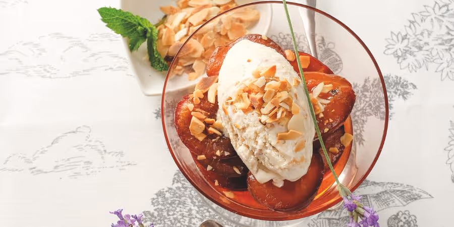 Annemarie: Das Problem mit Kompott ist, dass die Früchte beim Kochen gerne zerfallen. Und genau das passiert bei der Kompottzubereitung im Ofen viel weniger schnell: Durch die gleichmässige Hitze behalten die Früchte ihre Form besser.