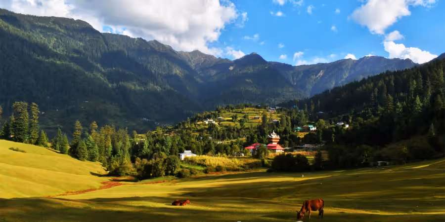 Himachal Pradesh, die Indische Schweiz, ist ein bergiger Bundesstaat im Norden Indiens. Er zählt zu den am besten entwickelten Bergregionen des Landes. Die schneebedeckten Gipfel des Himalaya, des Dhauladhar-Gebirges und des Pir Panjal prägen diese Landschaft. Diese verzaubert zudem durch exotische Täler, rauschende Flüsse und unendliche Wälder.