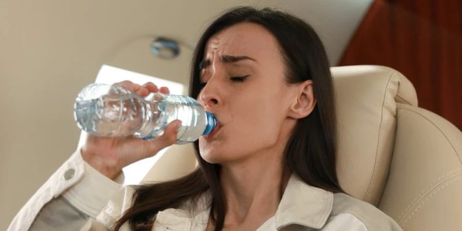 Wer mit perfekter Haut in die Ferien starten möchte, sollte nicht nur auf Sonnencreme achten. Vor und während langer Flüge ist eine ausreichende Wasserzufuhr wichtig – auch, wenn die Flugzeugtoilette einmal öfter aufgesucht werden muss.