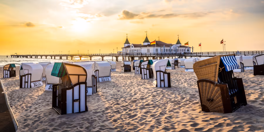 Der Herbst ist ideal, um sich einfach nur treiben zu lassen – oder im Strandkorb zu entspannen. Der erste seiner Art wurde übrigens 1882 in Heringsdorf erfunden und trat von hier aus seinen weltweiten Siegeszug an.