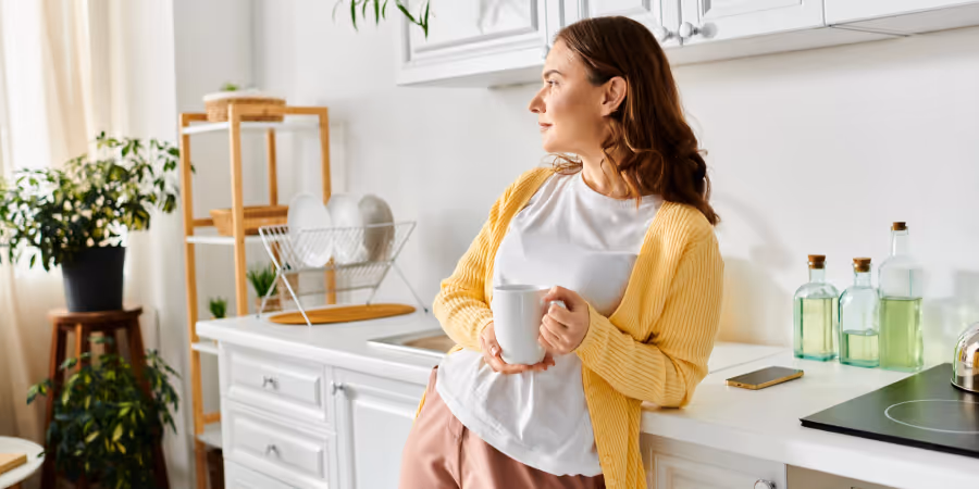 Verzichte auf Deko, die du selten beachtest und die nur Staub sammelt. Du wirst schnell merken: Mit jeder freien Ecke wird die Küche heller und einladender.