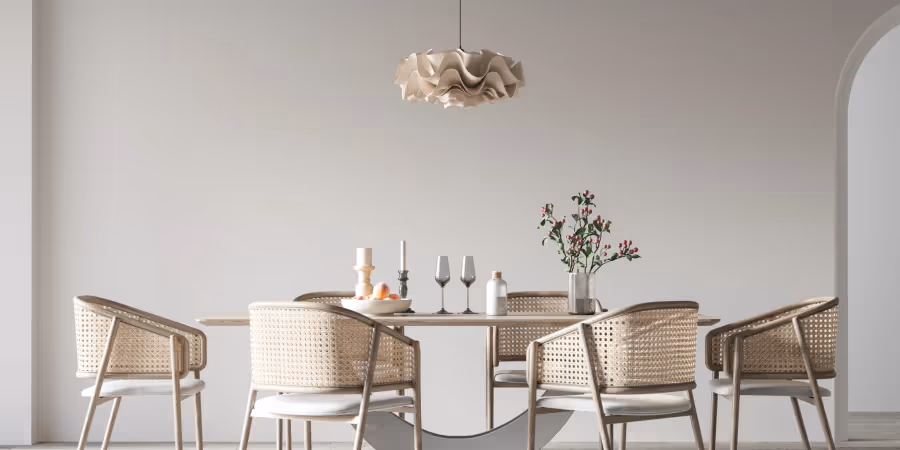 Höhenverstellbare Pendelleuchten mit warmweissem Licht betonen die Tischfläche optimal und vermeiden Blendung, wenn sie 60 bis 65 Zentimetern über der Tischoberfläche hängen. Für lange Tische eignen sich mehrere hintereinander angeordnete Leuchten oder lineare Modelle, die eine gleichmässige Ausleuchtung garantieren.