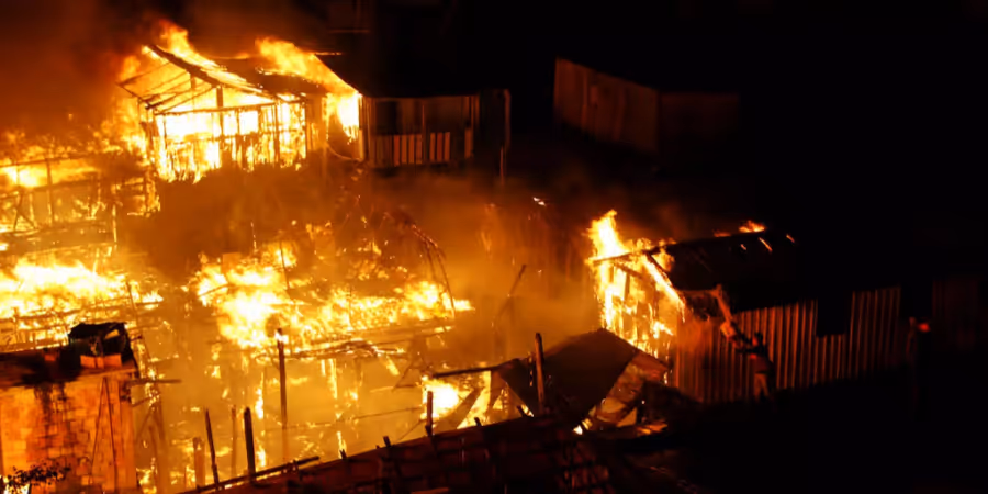Die Behörden vermuten, dass das Feuer beim Kochen ausbrach. Die Flammen breiteten sich dann in dem dicht bebauten Armenviertel, in dem viele Häuser aus Holz sind, rasend schnell aus.