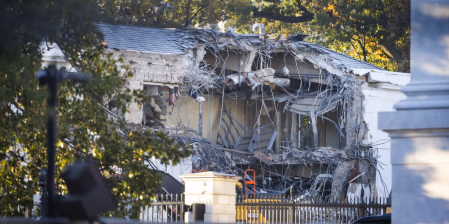 Am Ostflügel des Weissen Hauses haben die Abrissarbeiten für Trumps geplanten 8000-Quadratmeter-Ballsaal begonnen, der Platz für 1000 Gäste bieten soll.