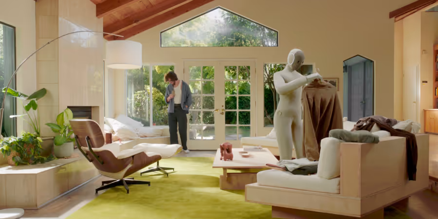 Das US-Unternehmen 1X Home Robots präsentierte den Roboter NEO. Er faltet Wäsche, sortiert Regale und kann per Sprachbefehl gesteuert werden.