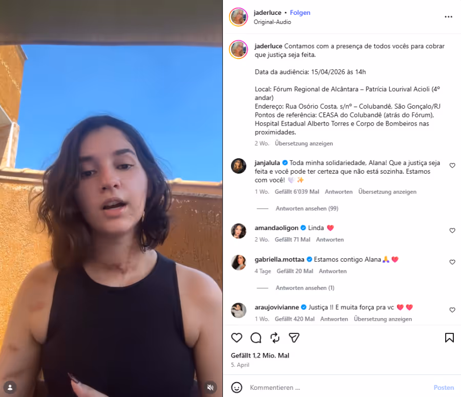 Die 20-jährige Alana Anísio Rosa wurde Opfer eines versuchten Femizids. Ein Mann stach Dutzende Male auf sie ein, nachdem sie ein Date abgelehnt hatte, berichten brasilianische Medien.