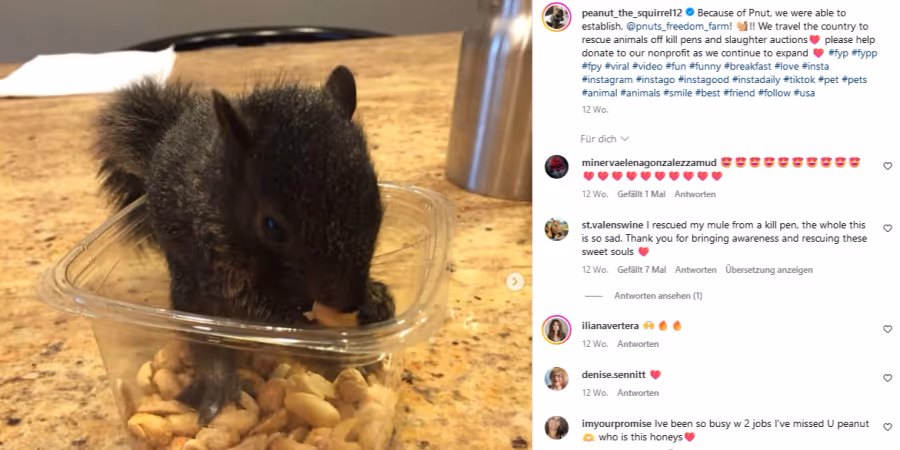 Gemeinsam mit seiner Frau habe er bereits über 300 Tiere gerettet, darunter Katzen, Hunde, Pferde und Schweine. Vor wenigen Tagen wurde jedoch bekannt, dass die Umweltschutzbehörde «Peanut» beschlagnahmt hatte.