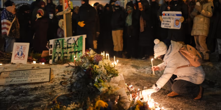 Menschen versammeln sich während einer Mahnwache für den 37-jährigen Alex Pretti, der in Minneapolis von einem US-Grenzschutzbeamten tödlich verletzt wurde. Foto: Adam Gray/AP/dpa - Keystone/AP/Adam Gray