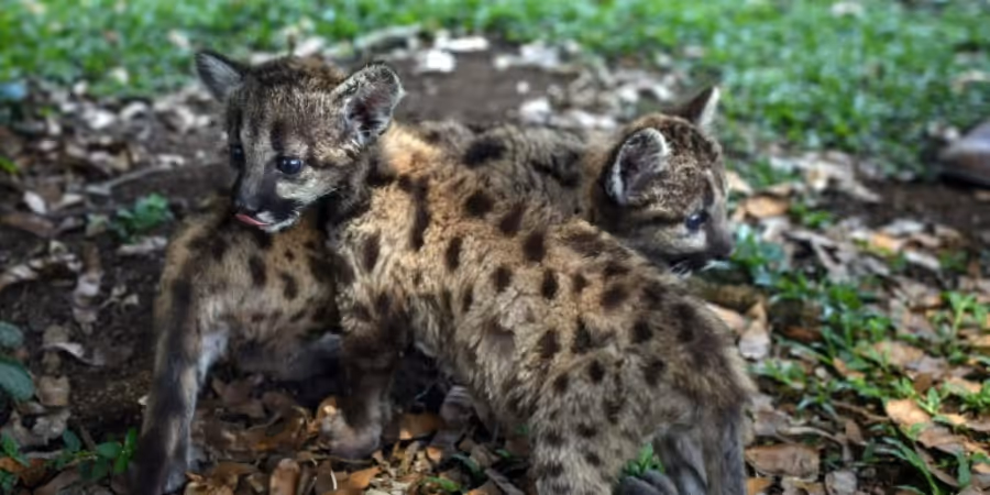 Die beiden jungen Pumas haben in ihren ersten Monaten noch schwarze Tupfen auf ihrem Fell, die mit der Zeit verblassen. Die Eltern der beiden Jungtiere stammen aus einem Zirkus. 2015 hat Mexiko per Gesetz Zirkusvorführungen mit Tieren verboten.