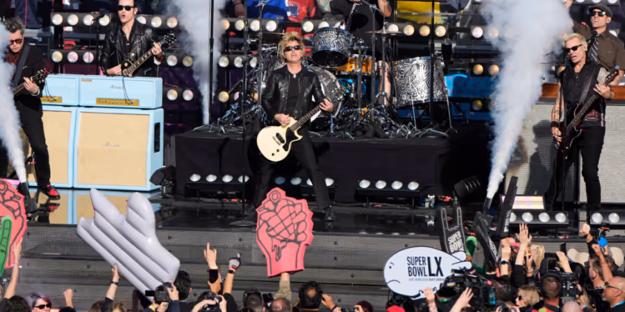 Mit Musikstars auf der Bühne und viel Prominenz unter den Zuschauern hat die American-Football-Profiliga NFL auf den Super Bowl als grösstes Einzelsportereignis des Jahres eingestimmt. Vor dem Kickoff zum Football-Finale zwischen den New England Patriots und den Seattle Seahawks im Levi’s Stadium von Santa Clara (Kalifornien) trat am Sonntagabend als Hauptact der Eröffnungszeremonie die US-Punkrock-Band Green Day auf. Die Gruppe performte ihren als politische Protesthymne bekannten Anti-Kriegs-Song «Holiday» sowie die Hits «Boulevard of Broken Dreams» und «American Idiot».