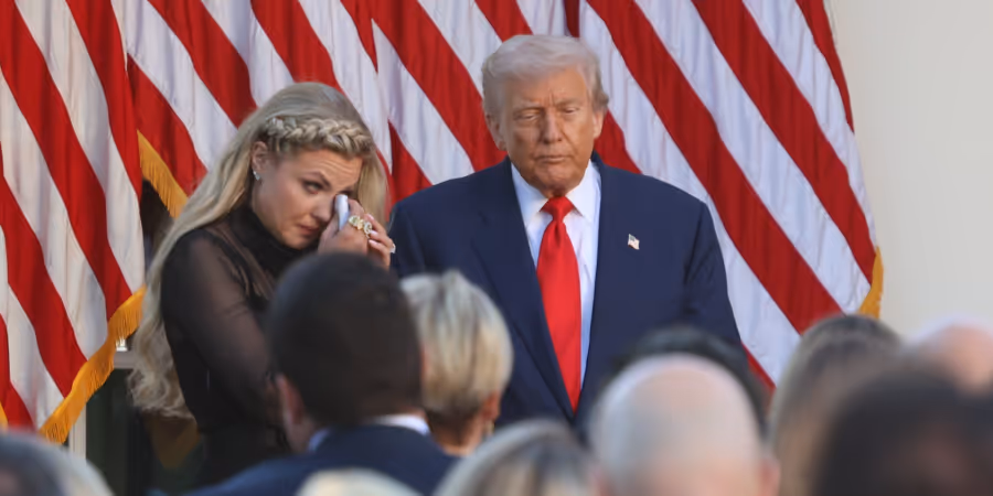 Erika Kirk dankte dem US-Präsidenten in einer emotionalen Rede, immer wieder wischte sie sich dabei die Tränen weg. Sie habe siebeneinhalb Jahre damit verbracht, das perfekte Geburtstagsgeschenk für ihren Mann zu finden, sagte die Witwe. «Aber jetzt kann ich mit Zuversicht sagen, Herr Präsident, dass Sie ihm das beste Geburtstagsgeschenk gemacht haben, das er jemals bekommen konnte.»