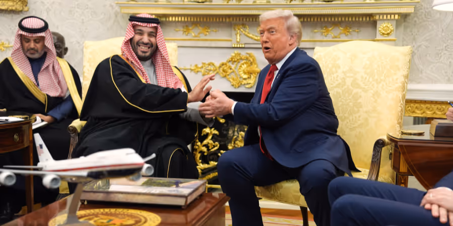 «Ich bin sehr stolz darauf, was er geleistet hat. Was er getan hat, ist unglaublich, hinsichtlich Menschenrechten und allem anderen», sagte Trump im Oval Office neben einem sichtlich zufriedenen MBS, wie der saudische Thronfolger oft nur genannt wird. Trump fügte hinzu: «Es ist eine Ehre, dein Freund zu sein, und es ist eine Ehre, dass du hier bist.»