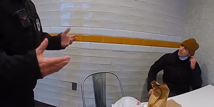 Auf dem Video, das etwa der Sender CBS ausstrahlte, ist zu sehen, wie Mangione in einem Fast-Food-Restaurant an einem Tisch sitzt, vor ihm eine braune Essenstüte. Der 27-Jährige trägt eine Mütze und Gesichtsmaske, die Mund und Nase bedeckt. Ein Polizist, gefilmt von einer Bodycam, nähert sich ihm und bittet ihn, seine Maske abzulegen. Mangione bleibt äusserlich ruhig, zieht seine Maske ab.