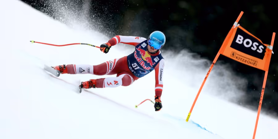 Julian Schütter am Dienstag, 17. Januar 2023 während des 1. Trainings der Weltcup-Abfahrt der Männer, auf der Streif in Kitzbühel. - keystone