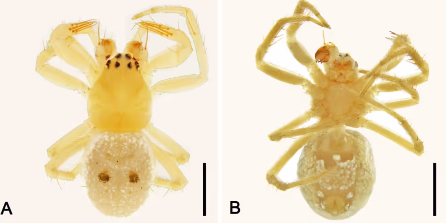 Spinnen der Familie Araneidae sind dafür bekannt, dass sie kugelförmige Netze bauen. Die neue Gattung unterscheidet sich von anderen Gruppen der Familie durch zwei dunkle Flecken auf dem Körper und durch typische Haare auf dem ersten Beinpaar der Männchen.