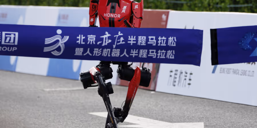 Bei einem Halbmarathon in China sind Roboter der menschlichen Konkurrenz erstmals davongelaufen. In Peking überquerte die ferngesteuerte Version des Humanoids «Blitz» aus dem Team des Smartphone-Herstellers Honor trotz eines Sturzes kurz vor dem Ende nach 48 Minuten und 19 Sekunden als erster die Ziellinie, wie im Staatsfernsehen zu sehen war.