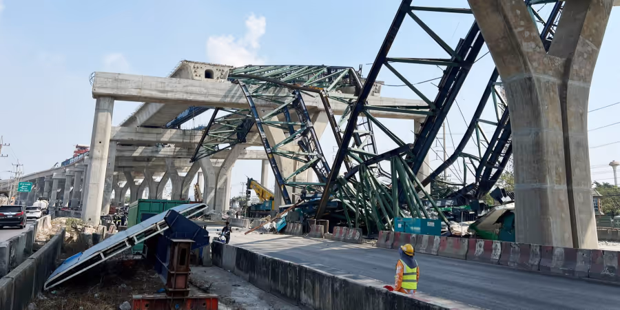 Am Mittwoch stürzte ein Kran nördlich von Bangkok auf einen Zug, es gab Tote und Verletzte. Am Donnerstag stürzte nun ein Kran bei Bangkok auf eine Strasse.