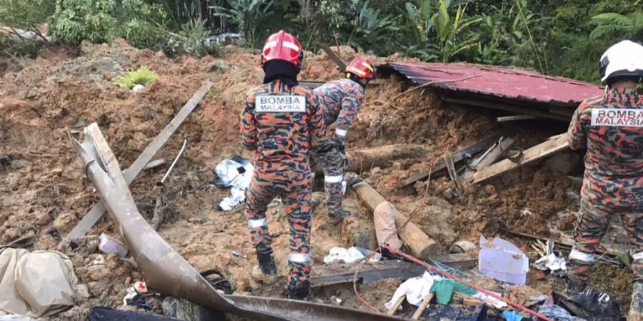 Der Campingplatz in Batang Kali war in der Nacht zum Freitag vom Erdrutsch erfasst worden. Die Stadt befindet sich etwa 50 Kilometer nördlich der Hauptstadt Kuala Lumpur. Mehr als 60 Menschen konnten nach Behördenangaben gerettet werden, einige waren verletzt. Offizielle Angaben zu den Nationalitäten der Opfer gab es zunächst nicht.