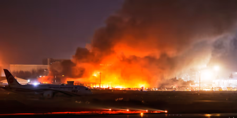 Dichter schwarzer Rauch über der Landebahn hatte die Behörden gezwungen, den Flugverkehr vorübergehend auszusetzen. Am späten Samstagabend konnte der Flugverkehr nach Angaben des Flughafens wieder aufgenommen werden.