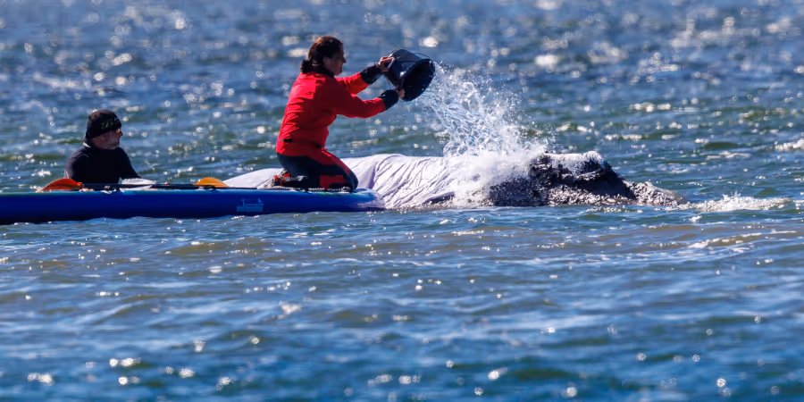 Ob der Buckelwal die Rettungsversuche überlebt, ist offen. Experten zufolge ist er stark geschwächt.