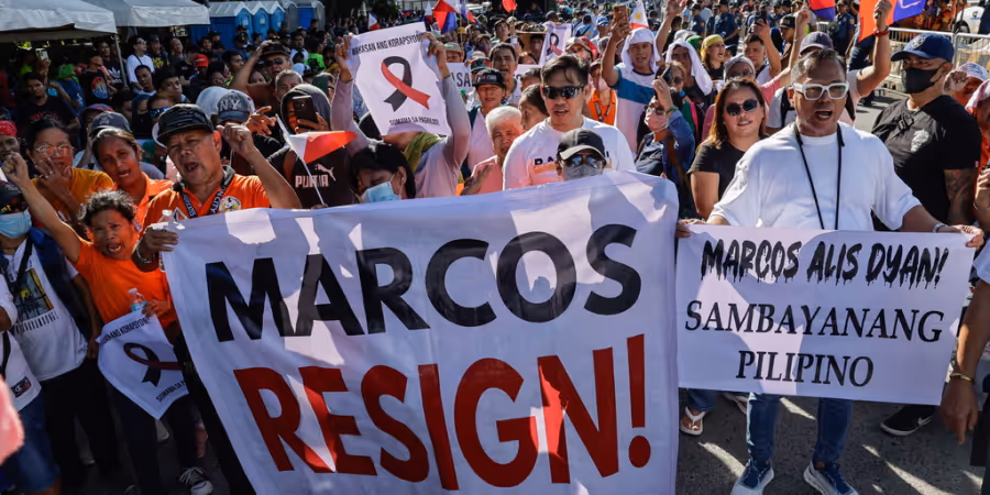 Grund für den Protest ist ein Korruptionsskandal um staatlich finanzierte Hochwasserschutzprojekte im Wert von über 500 Milliarden Pesos (7,3 Milliarden Euro). Die Philippinen sind besonders stark von Überschwemmungen, Taifunen und extremen Wetterereignissen bedroht. Im Schnitt ziehen rund 20 tropische Wirbelstürme pro Jahr über den südostasiatischen Inselstaat.