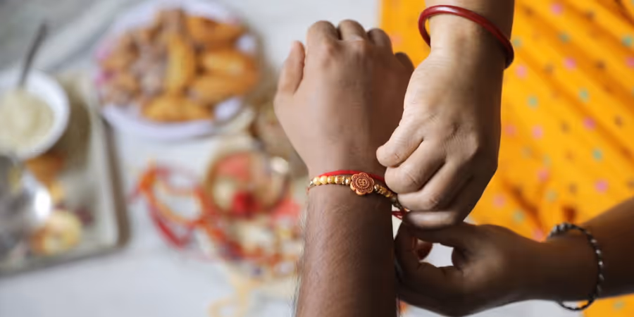 In Indien feiern gerade viele Menschen ein wichtiges hinduistisches Fest, bei dem sich Geschwister ehren. Dabei binden Schwestern ihren Brüdern am Donnerstag ein Armband aus roten und goldenen Fäden sowie teils auch Glasperlen um, das sie beschützen soll. Sie singen Mantras und sprechen Gebete.