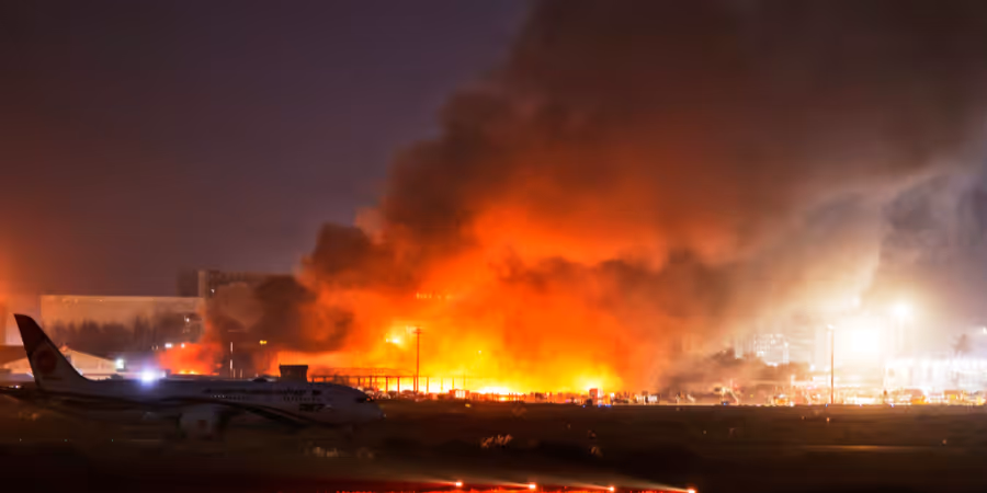 Über mögliche Verletzte gab es zunächst keine Berichte. In sozialen Medien veröffentlichte Aufnahmen zeigen, wie dichter, schwarzer Rauch über dem Flughafen aufsteigt.