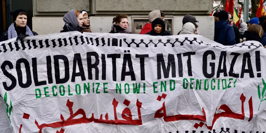Die Demonstrantinnen und Demonstranten fordern unter anderem einen sofortigen Waffenstillstand sowie ein Engagement der Schweiz im Uno-Sicherheitsrat für eine militärische und wirtschaftliche Sanktionierung des Staats Israel. In einem Aufruf zur Kundgebung sprechen die Organisatoren von einem «fortlaufenden Genozid in Gaza».
