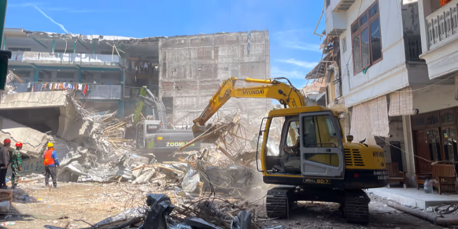 Man habe den Einsatz von Baggern und Kränen bislang eingeschränkt, um die unter den Trümmern eingeschlossenen Leichen nicht zu verletzen. An dem Internatsgebäude in der Stadt Sidoarjo wurde noch gebaut, es war aber bereits in Betrieb.