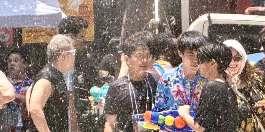 Zwischen dem 13. und 15. April wird es dabei traditionell sehr nass – eine willkommene Abkühlung bei Temperaturen von fast 40 Grad. Viele Teilnehmer waren schon nach wenigen Minuten von Kopf bis Fuss klatschnass – dazu ertönte aus Lautsprechern ohrenbetäubende Partymusik.