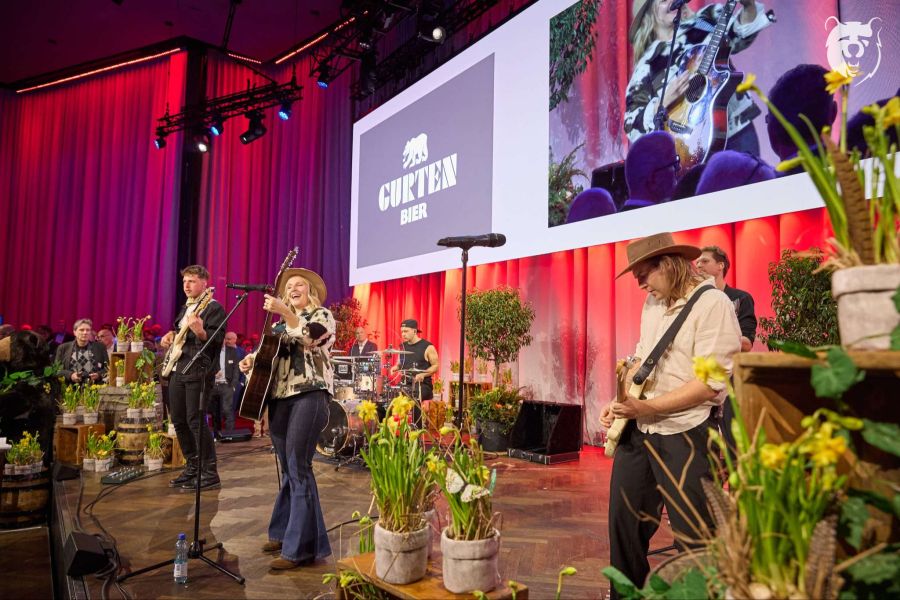 Für einen überraschend modernen Ton sorgte Musikerin Julia Leon: Sie brachte den Berner Marsch in einer rockigen englischen Version auf die Bühne und damit viel Schwung in einen fröhlichen Abend. Prosit!