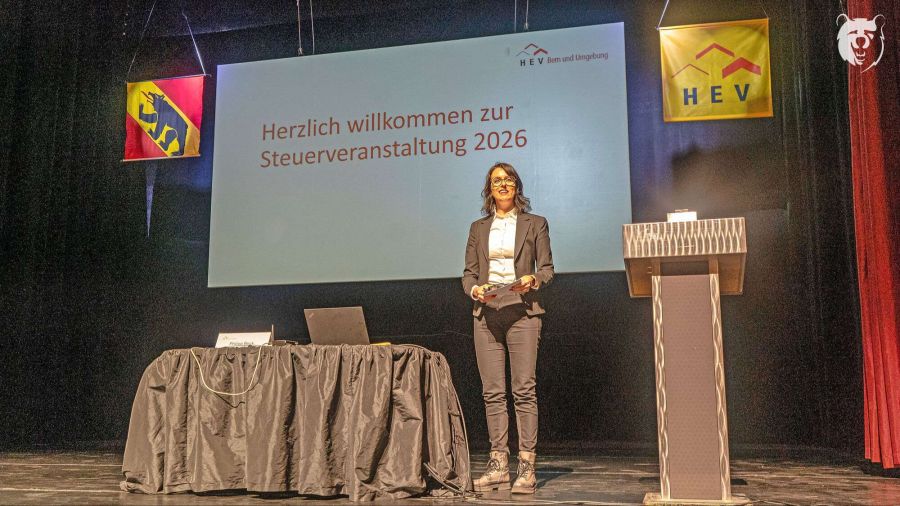 Zum ersten Mal in ihrer Funktion als Präsidentin des HEV Bern und Umgebung begrüsste Simone Richner die fast 500 anwesenden Mitglieder zur Steuerveranstaltung 2026 im Berner National.