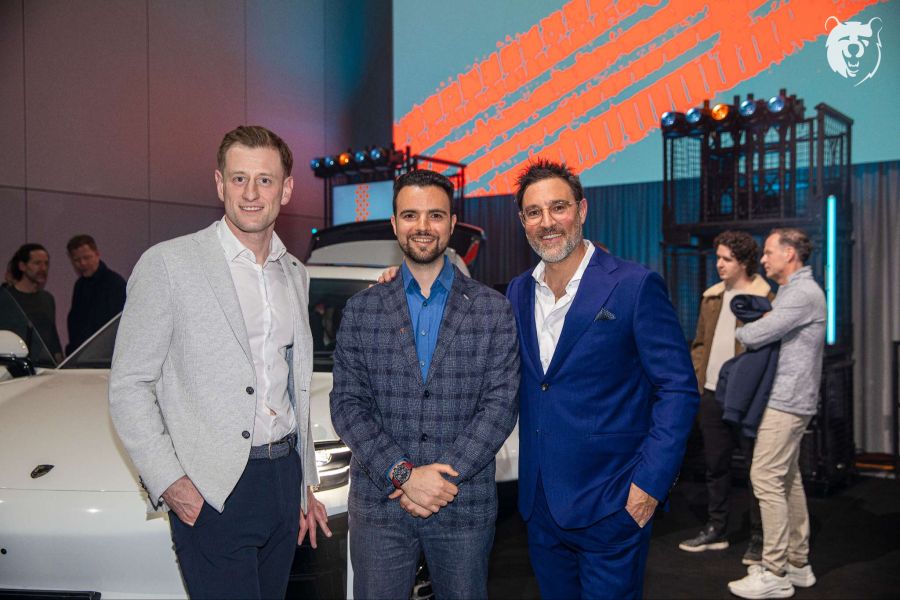 Geschäftsführer Marko Nedovic und Odey Al-Omari von Porsche Schweiz präsentierten die Fahrzeuge, moderiert wurde der Abend von SRF-Mann Salar Bahrampoori.
