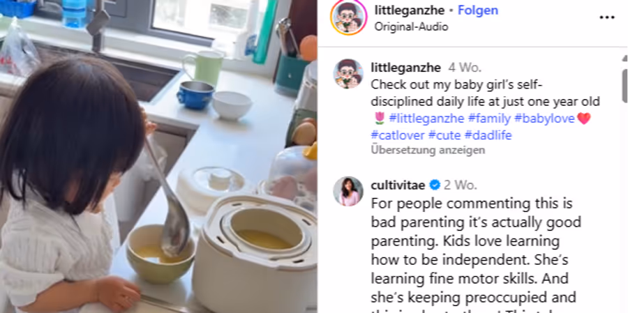 - Ein einjähriges Mädchen aus China übernimmt darin scheinbar den gesamten Haushalt.