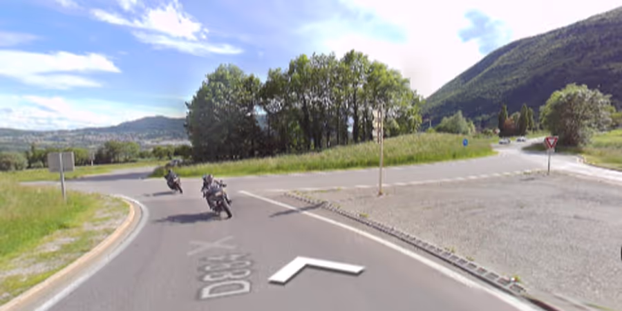 Bei diesem Kreisel kam das Auto von der Strasse ab. - Google Street View