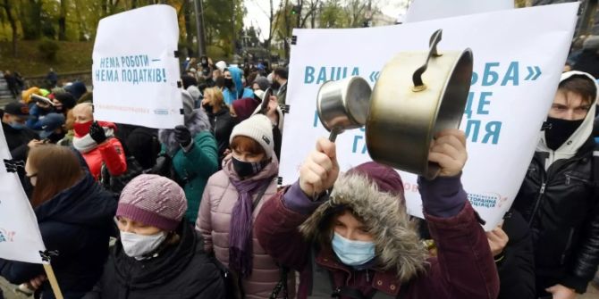 - Kleinunternehmer haben in Kiew gegen geplante Quarantänemassnahmen protestiert.