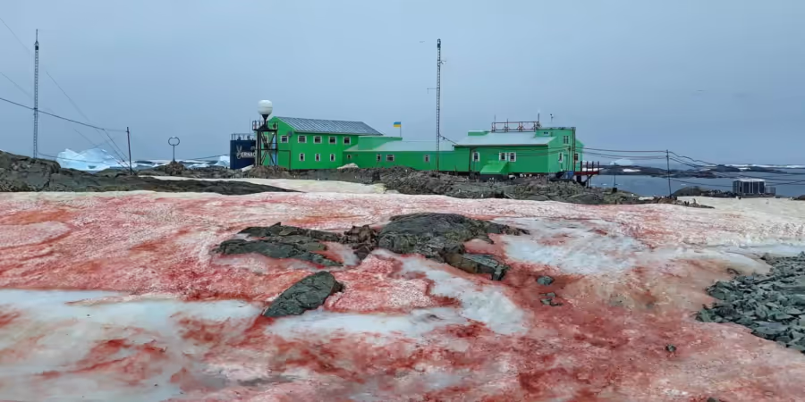 - In der Antarktis gibt es seit Wochen ein ungewöhnliches Naturphänomen: Der Schnee um eine ukrainische Forschungsstation ist blutrot gefärbt.