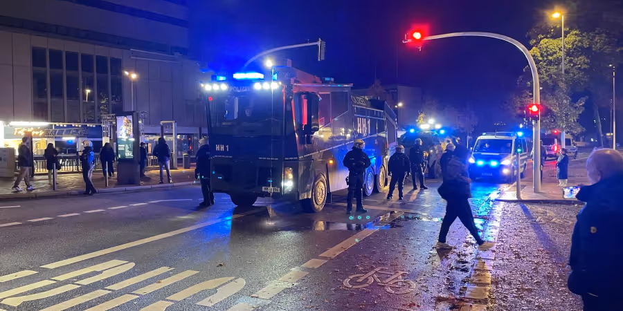 In der Halloween-Nacht ist es in Hamburg zu Ausschreitungen gekommen. Die Polizei setzte nach Angaben eines Sprechers Wasserwerfer gegen Randalierer ein. Auch in Berlin war die Polizei mit einem grösseren Aufgebot im Einsatz. Es sei vereinzelt Pyrotechnik auf Passanten und vorbeifahrende Fahrzeuge geworfen worden, teilten die Einsatzkräfte auf der Plattform X, vormals Twitter, mit.