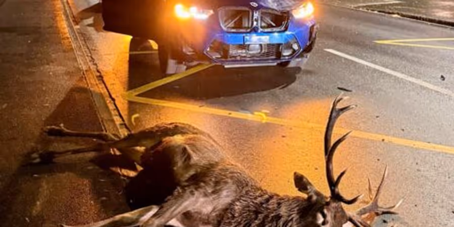 Hirsch wurde auf Gegenfahrbahn geschleudert