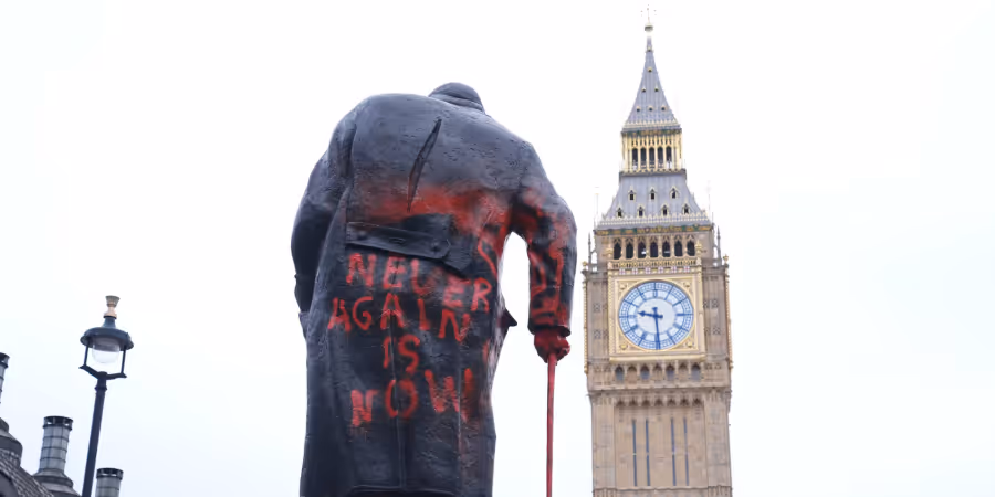 Das Denkmal wurde laut der BBC 1973 von der Witwe des Kriegszeit-Premiers enthüllt. In der Vergangenheit wurde die Statue demnach bereits mehrmals beschmiert, unter anderem im Juni 2020 während einer Black-Lives-Matter-Demonstration.