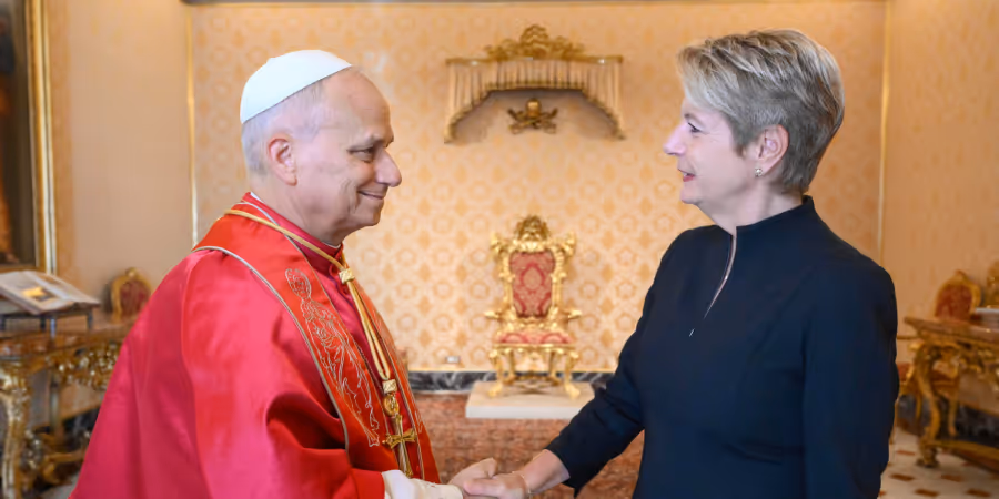 Das Gespräch mit Papst Leo XIV. sei sehr offen, herzlich und auch persönlich gewesen, sagte die Bundespräsidentin gegenüber der Nachrichtenagentur Keystone-SDA am Rande des Petersplatzes in Rom. Der Austausch habe den Eindruck bestätigt, den sie von ihrer ersten Begegnung gehabt habe: Dass der neue Papst eine sehr herzliche Person sei, der den Menschen zuhöre.