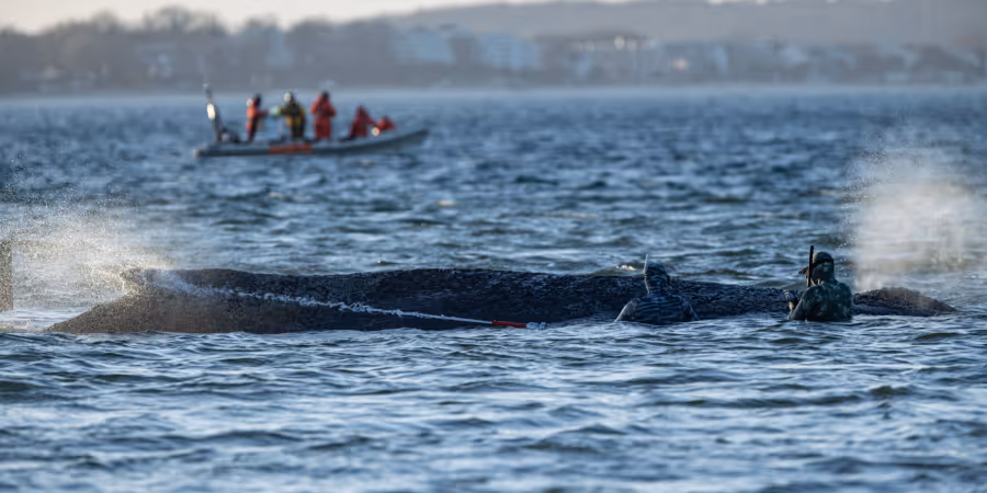 Sie betonten, der Wal sei «frei genug» um selbstständig wegzuschwimmen. Doch es bestehe die Möglichkeit, dass das Tier bereits zu schwach sei.
