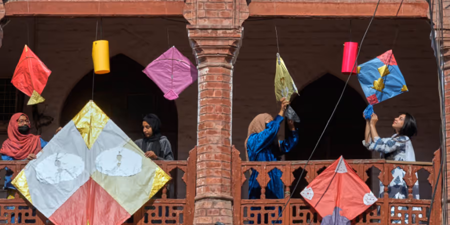 Der Himmel über Lahore verwandelte sich in den vergangenen Tagen in ein farbenprächtiges Mosaik, als Zehntausende von den Dächern aus ihre Drachen steigen liessen. Auf den Strassen herrschte seit Donnerstag geschäftiges Treiben mit kleinen Küchen und Marktständen, während Besucher aus ganz Pakistan und dem Ausland das Spektakel verfolgten.