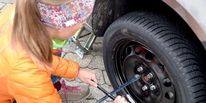 Mädchen unter Auto eingeklemmt